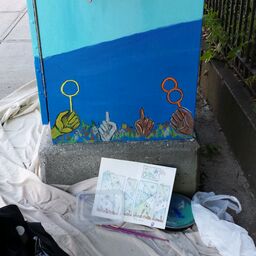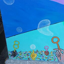 My first time applying to a city mural project we were given a theme. Our theme was to express pride in Peabody through our art with aspects of what truly makes the city a community. I was so excited to submit my work to the first round of an amazing opportunity I couldn’t wrap my mind around what is was I was going to do. My ideas bounced around until I was certain of what it was that gave me pride being a resident to this city. The initial inspiration came to me as I passed by a park and saw children and parents playing with bubbles. What my design is to me is the actuality of the vast melting pot that resides within out city lines and how everyone is connected to the history and advancements of this place. When I got the acceptance I was completely blown away and was very eager to get to work right away. Featured below is the timeline of my design coming to life. In my work I incorporated historical building that are found around the city and the variety of helping hands that are our friends, neighbors and families occupying where we call home.